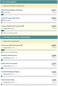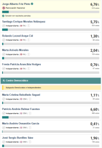 La segunda mayoría la obtuvo Jorge Fritz con 510 sufragios; le sigue Cristina Villagra con 491 votos; Genoveva Sepulveda con 456 votos; Yessica Ulloa con 401 votos y Jeannette Muñoz con 382 votos.